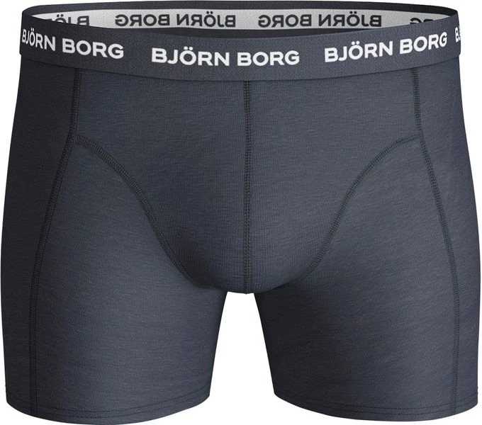 Dit 3-Pack Bjorn Borg boxershorts bevat twee uni onderbroeken in donkerblauw en blauw en een boxer met een camouflage print in blauwtinten. De elastieke taillebanden van de onderbroeken hebben naast het herkenbare Björn Borg logo ook een met de shorts contrasterende kleur. Alle onderbroeken zijn gemaakt van 95% katoen, gemengd met 5% elasthaan (stretch). Hierdoor hebben de shorts voor heren zachte en comfortabele touch. Verder zijn de broekspijpjes van deze Bjorn Borg boxershorts iets langer dan gebruikelijk, wat het draagcomfort verhoogd..