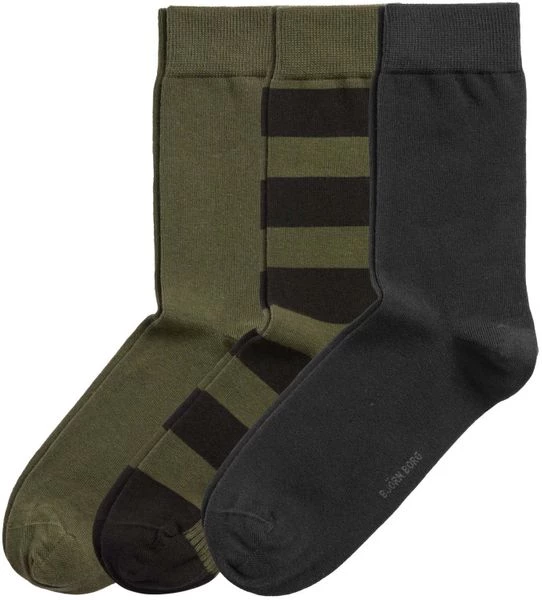 De klassieke ‘Core’ herensokken van Bjorn Borg in een handige 3-pack. De donkergroene en zwarte sokken met een uni en strepen dessin zijn gemaakt van katoen, polyamide en elastaan waardoor deze perfect aansluiten rondom de voeten. Op de onderkant van de sok staat het herkenbare Björn Borg logo. Het hoge katoengehalte en de goed te combineren kleuren zorgen ervoor dat de kousen bij elke gelegenheid kunnen worden gedragen.