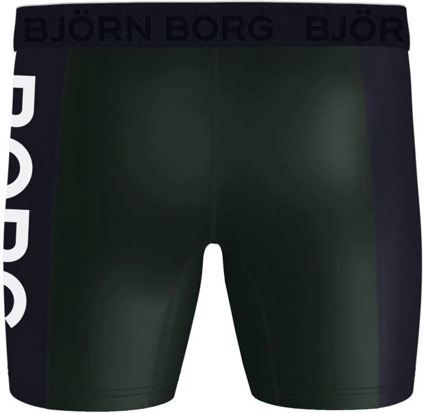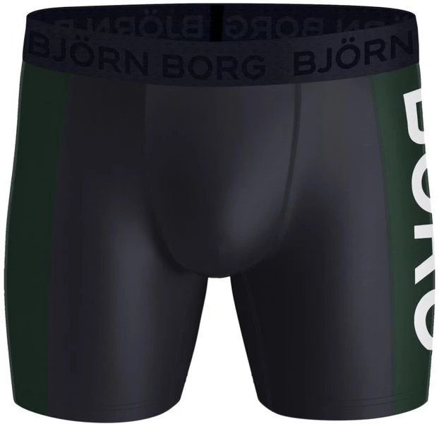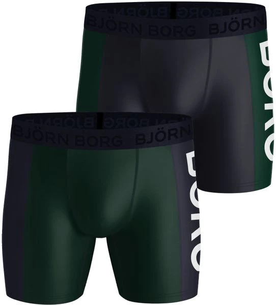 Dit 2-Pack Bjorn Borg boxershorts bevat twee shorts in de uni kleur groen en blauw. Alle onderbroeken zijn gemaakt van 90% Polyester, gemengd met 10% recycled elasthaan (stretch). Hierdoor voelen de shorts zacht en comfortabel aan. Verder zijn de broekspijpjes van deze Bjorn Borg boxershorts net ietsje langer dan gebruikelijk voor extra draagcomfort. De tailleband van elastiek is voorzien van een herkenbaar Bjorn Borg logo.