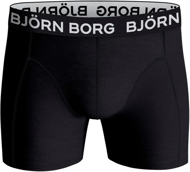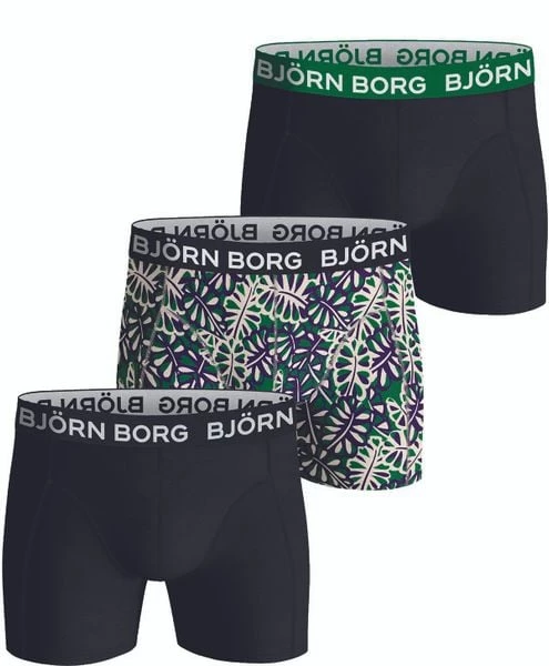 Dit 3-Pack Bjorn Borg boxershorts bevat twee shorts in een zwarte kleur, en één met print. De onderbroeken zijn gemaakt van 95% katoen, gemengd met 5% elasthaan (stretch). Hierdoor voelen de shorts zacht en comfortabel aan. De tailleband van elastiek is voorzien van een herkenbaar Bjorn Borg logo.