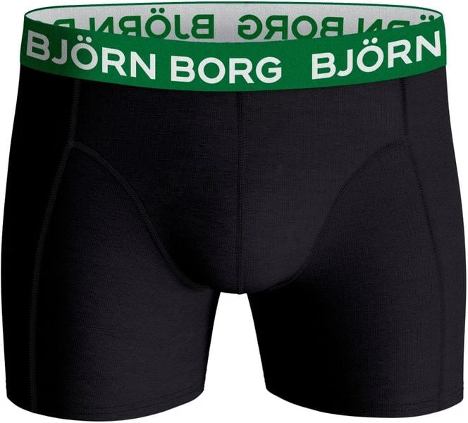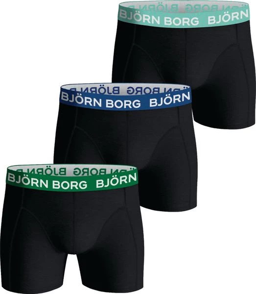 Dit 3-Pack Bjorn Borg boxershorts bevat drie shorts in een zwarte kleur. De onderbroeken zijn gemaakt van 95% katoen, gemengd met 5% elasthaan (stretch). Hierdoor voelen de shorts zacht en comfortabel aan. De tailleband van elastiek heeft verschillende kleuren en is voorzien van een herkenbaar Bjorn Borg logo.