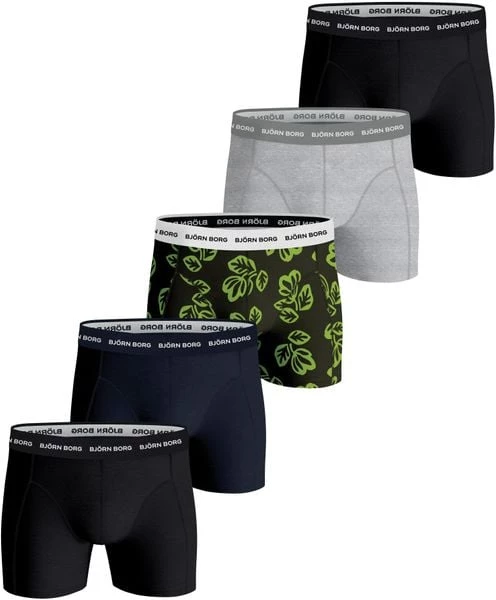 Dit 5-Pack Bjorn Borg boxershorts bevat vijf shorts in verschillende kleuren. De onderbroeken zijn gemaakt van 95% katoen, gemengd met 5% elasthaan (stretch). Hierdoor voelen de shorts zacht en comfortabel aan. De tailleband van elastiek heeeft verschillende kleuren en is voorzien van een herkenbaar Bjorn Borg logo.