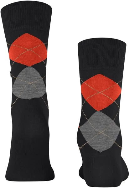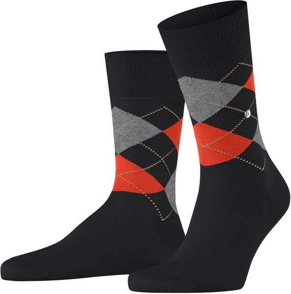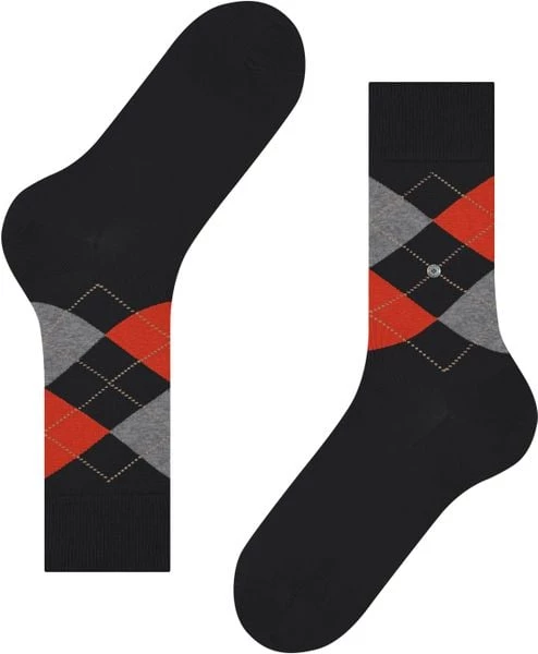De Burlington sokken uit de Manchester collectie zijn gemaakt van katoen en polyamide (nylon), waardoor de sok comfortabel aansluit rond de voet. Dit paar sokken heeft een zwarte kleur met grijze en oranje ruiten, die de sok een traditionele look geven.
