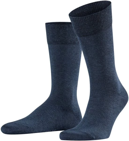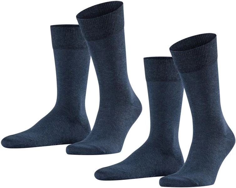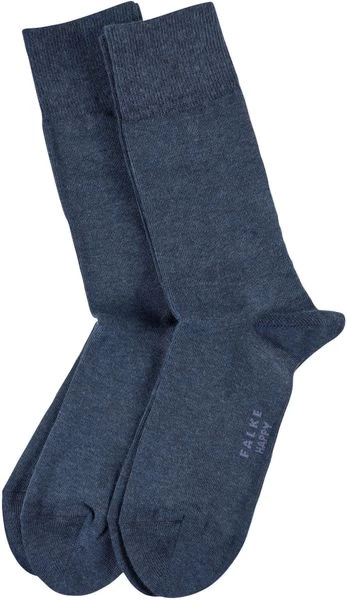 Deze Falke Happy sokken worden per 2 paar geleverd en zijn een absolute must have. De donkerblauwe sokken zijn gemaakt van 80% katoen, 18% polyamide (nylon) en 2% elastaan (stretch). Hierdoor voelen deze hoge sokken zacht en comfortabel aan, en blijven ze ook mooi in model zonder uit te lubberen.