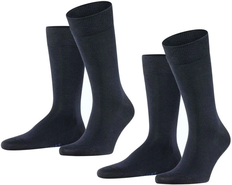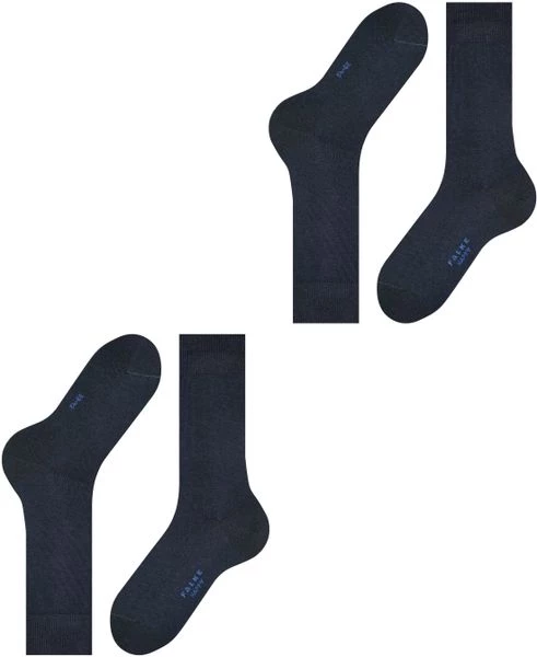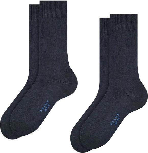 Deze Falke Happy sokken worden per 2 paar geleverd en zijn een absolute must have. De donkerblauwe sokken zijn gemaakt van 80% katoen, 18% polyamide (nylon) en 2% elastaan (stretch). Hierdoor voelen deze hoge sokken zacht en comfortabel aan, en blijven ze ook mooi in model zonder uit te lubberen.