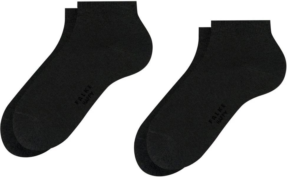 Deze Falke Happy sokken worden per 2 paar geleverd en zijn een absolute must have. De zwarte sokken zijn gemaakt van 85% katoen, 13% polyamide (nylon) en 2% elastaan (stretch). Hierdoor voelen deze lage sokken zacht en comfortabel aan, en blijven ze ook mooi in model zonder uit te lubberen.