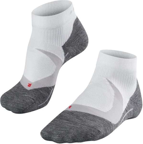 Deze RU4 Cool sokken hebben een witte kleur en zijn voorzien van donkergrijze vlakken, die zo zijn gepositioneerd dat deze niet boven je schoenen uitkomen.