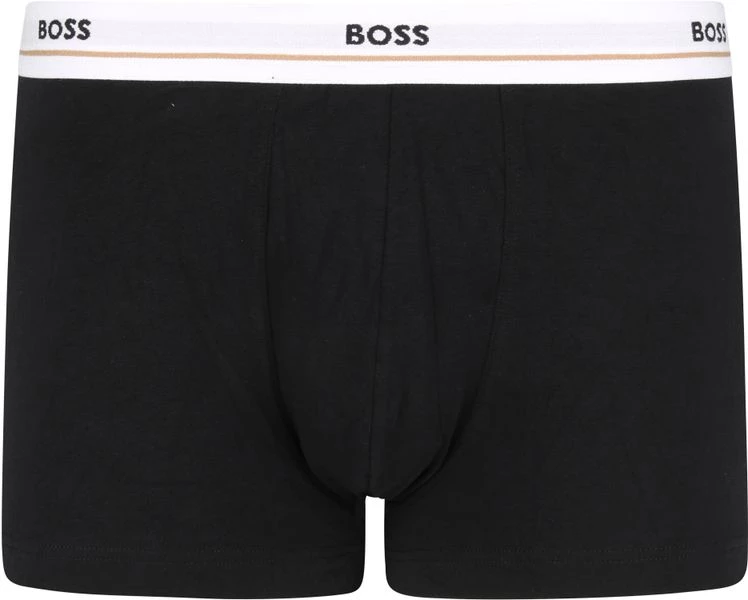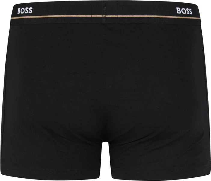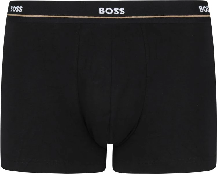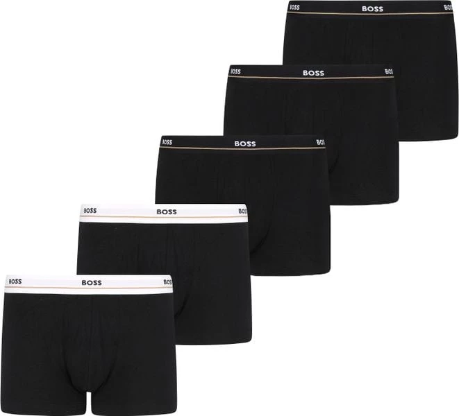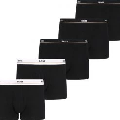 Deze set Hugo Boss boxershorts bevat vijf uni onderbroeken in het zwart. De witte en zwarte elastieke taillebanden van de onderbroeken hebben het herkenbare Hugo Boss logo. Alle onderbroeken zijn gemaakt van 95% katoen, gemengd met 5% elasthaan (stretch). Hierdoor hebben de shorts een zachte en comfortabele touch.