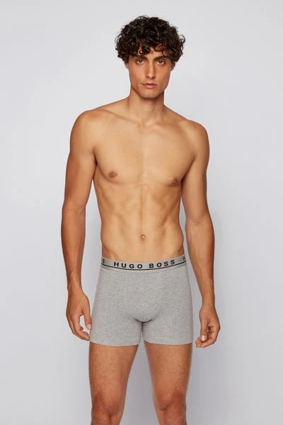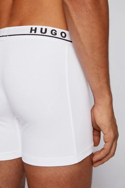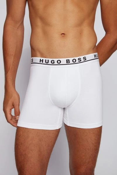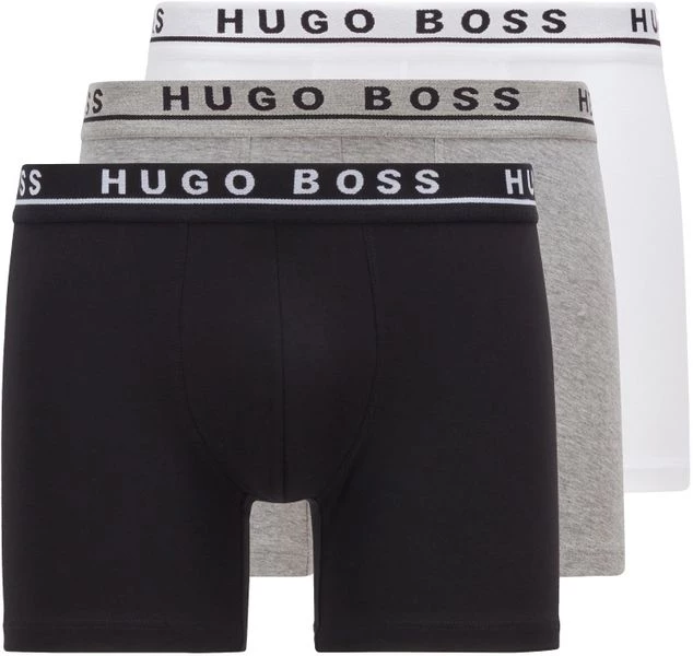 Met deze modieuze brief boxershorts van Hugo Boss haal je kwalitatieve onderbroeken met een moderne uitstraling in huis. Dit 3-pack bevat boxers in een witte, grijze en en zwarte kleur. De effen kleurige shorts zijn voorzien van een herhalend merklogo op de elastische tailleband, wat zorgt voor een sportieve en trendy look.