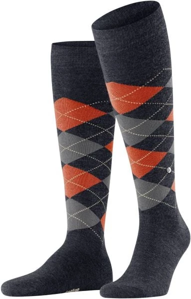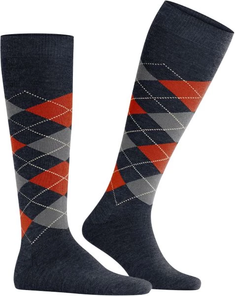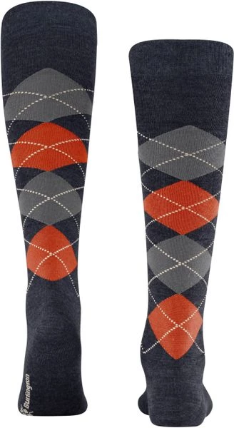 De Burlington kniekoousen uit de Edinburgh collectie zijn gemaakt van scheerwol en polyamide (nylon) waardoor de sok comfortabel aansluit rond de voet. Dit paar sokken heeft een blauwe kleur met gekleurde ruiten, die de sok een traditionele look geven.