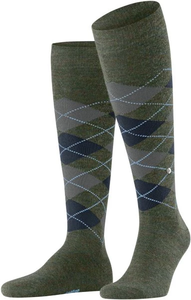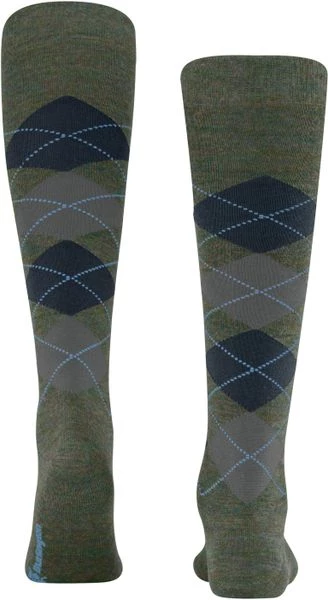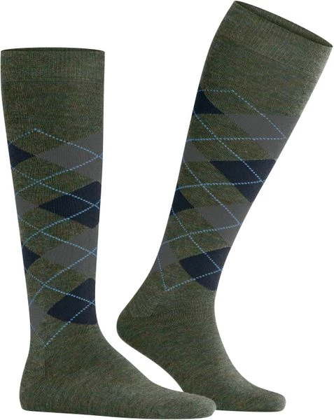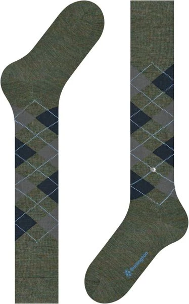 De Burlington kniekoousen uit de Edinburgh collectie zijn gemaakt van scheerwol en polyamide (nylon) waardoor de sok comfortabel aansluit rond de voet. Dit paar sokken heeft een groene kleur met gekleurde ruiten, die de sok een traditionele look geven.