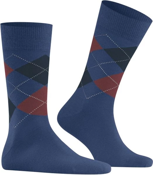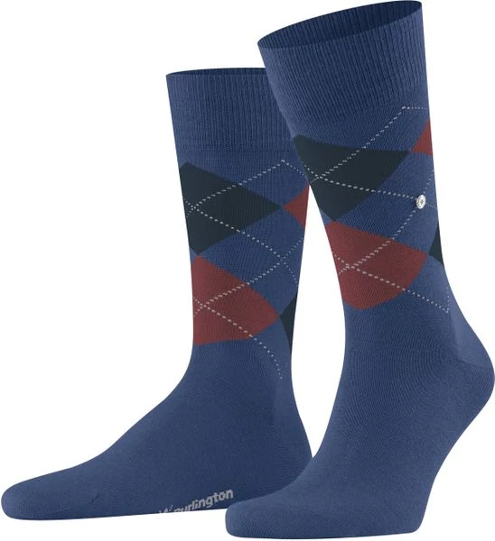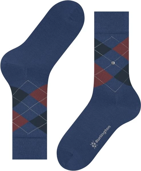 De Burlington sokken uit de Edinburgh collectie zijn gemaakt van scheerwol en polyamide (nylon) waardoor de sok comfortabel aansluit rond de voet. Dit paar sokken heeft een klassieke blauwe kleur met blauwe en rode ruiten, die de sok een traditionele look geven.
