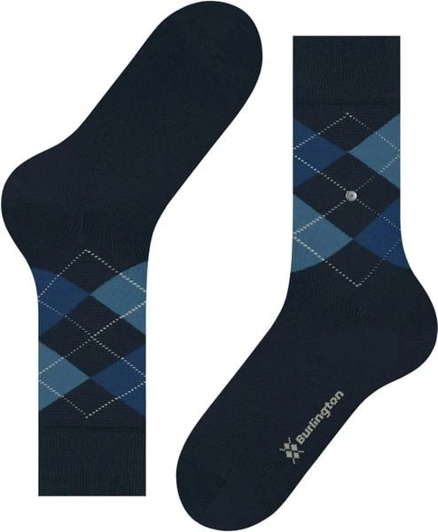 De Burlington sokken uit de Edinburgh collectie zijn gemaakt van 75% scheerwol en 25% polyamide (nylon) waardoor de sok comfortabel aansluit rond de voet. Dit paar sokken heeft een stijlvolle donkerblauwe kleur met licht- en donkerblauwe ruiten, die de sok een traditionele look geven.