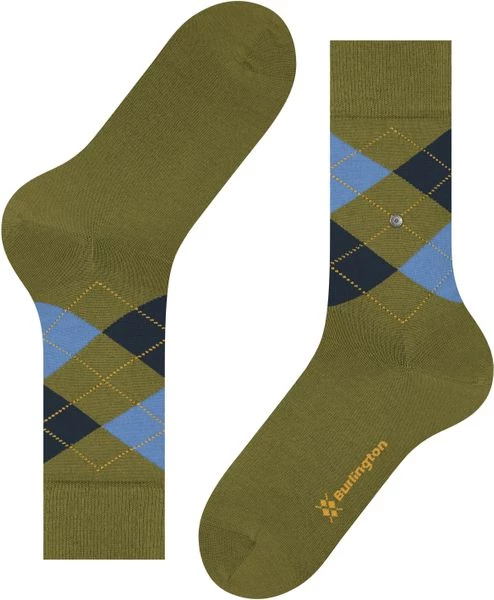 De Burlington sokken uit de Edinburgh collectie zijn gemaakt van scheerwol en polyamide (nylon) waardoor de sok comfortabel aansluit rond de voet. Dit paar sokken heeft een klassieke groene kleur met blauwe ruiten, die de sok een traditionele look geven.