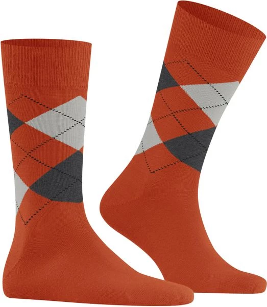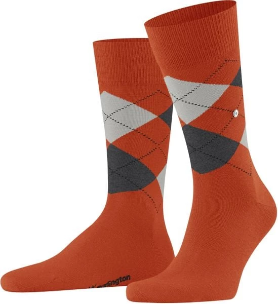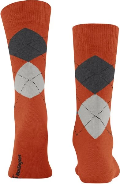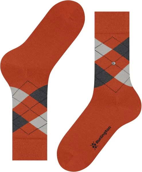 De Burlington sokken uit de Edinburgh collectie zijn gemaakt van scheerwol en polyamide (nylon) waardoor de sok comfortabel aansluit rond de voet. Dit paar sokken heeft een klassieke oranje kleur met licht- en donkergrijze ruiten, die de sok een traditionele look geven.