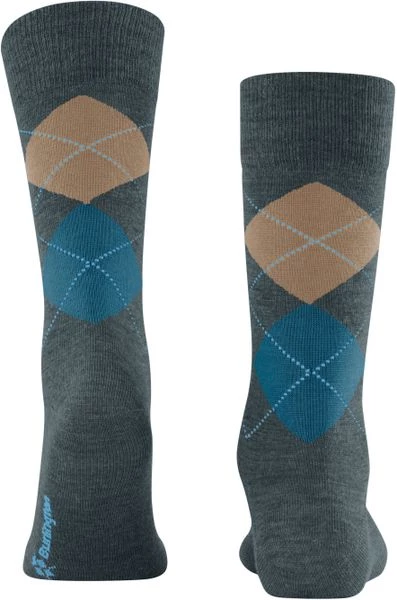 De Burlington sokken uit de Edinburgh collectie zijn gemaakt van scheerwol en polyamide (nylon) waardoor de sok comfortabel aansluit rond de voet. Dit paar sokken heeft een donkergroene kleur met blauwe en beige ruiten, die de sok een traditionele look geven.