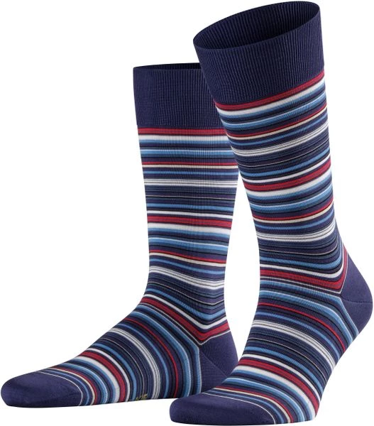 - Donkerblauwe sokken met multicolour streep print