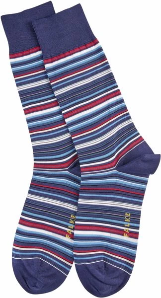 Dit paar Falke sokken uit de Microblock collectie geeft een vrolijke twist aan je outfit. De herensokken zijn gemaakt van katoen, polyamide (nylon) en elastaan (stretch) waardoor het zeer comfortabel draagt. De kousen hebben een navy kleur met subtiele multicolour strepen. Door de versterkte belastingszones biedt het je de ondersteuning die jij nodig hebt.