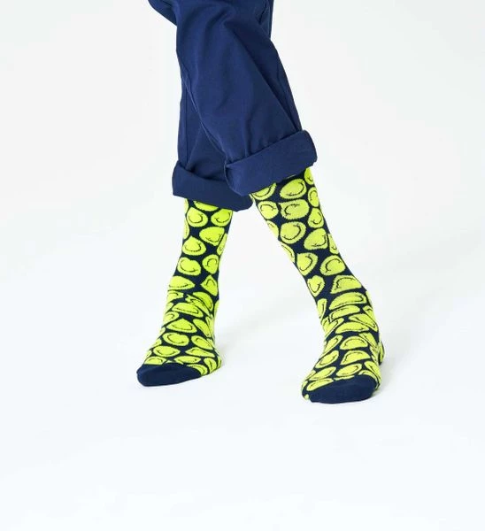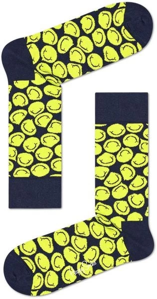 Deze navy sokken van Happy Socks met een patroon van Smileys zijn goed voor elk moment. Doordat de herensokken zijn gemaakt van gekamd katoen, gemixt met polyamide en elasthaan (stretch), dragen de kousen erg comfortabel. De opvallende prints van de Happy Socks geven iedere outfit meteen een vrolijke twist.