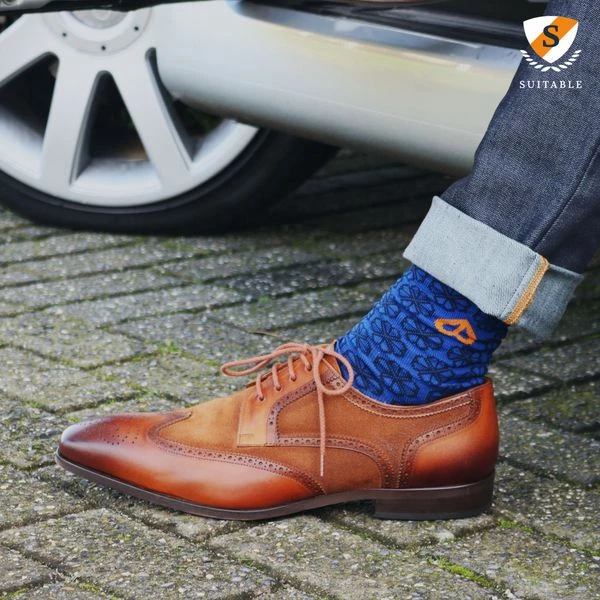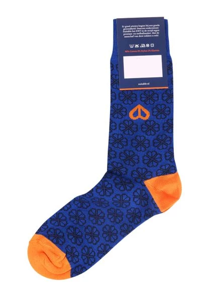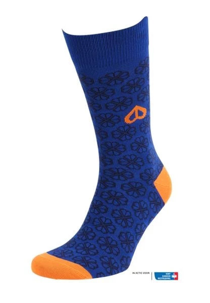 Deze unieke blauwe sokken zijn door Suitable speciaal ontwikkeld ten bate van KWF Kankerbestrijding.