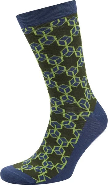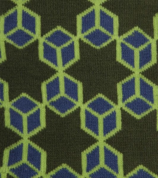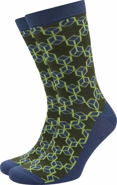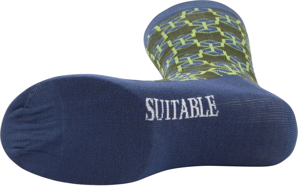 Dit paar Suitable sokken heeft een modische donkergroene kleur waarop een modern dessin verwerkt is in lichtgroen en blauw. Hierdoor geeft de kous je outfit een opvallende, vrolijke touch die uitstekend past in het huidige modebeeld.