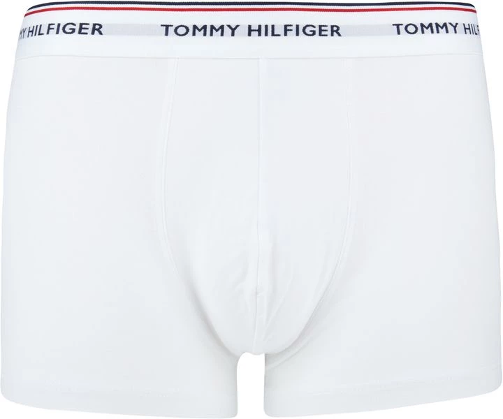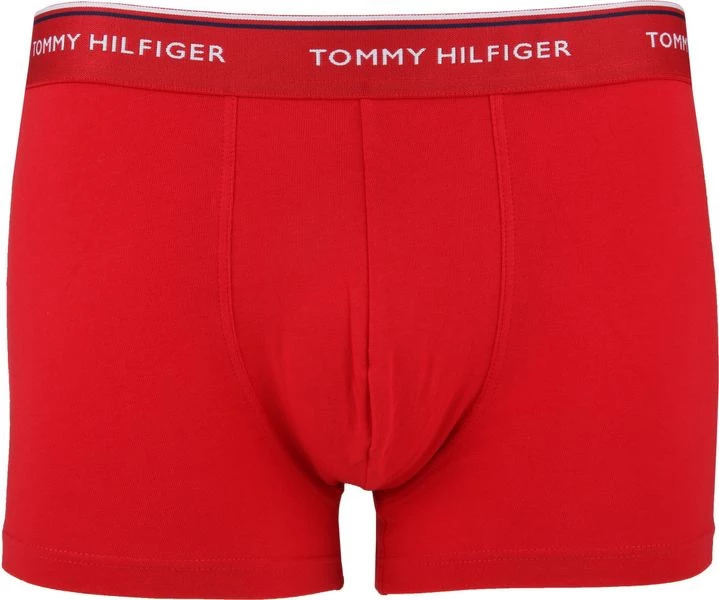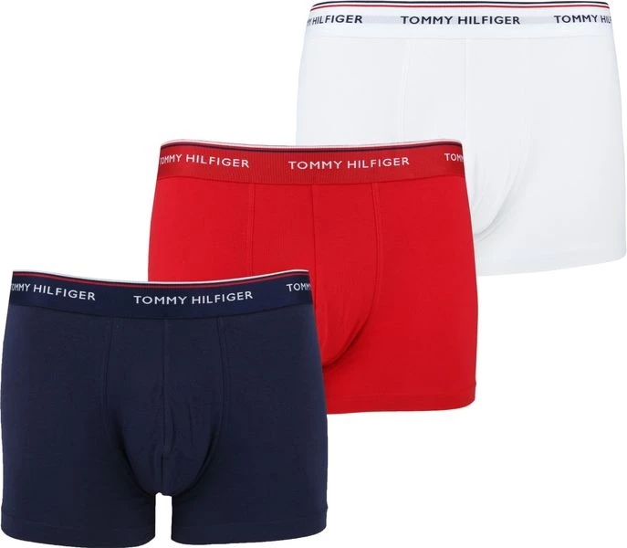 Dit 3-pack Tommy Hilfiger Trunk bevat drie neutrale boxershorts in de kleuren donkerblauw, rood en wit. Het herkenbare Tommy Hilfiger logo zit rondom de elastieke taillebanden van de boxershorts, afgewerkt met de bekende kleuren van het merk.