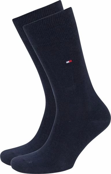 De klassieke herensokken van Tommy Hilfiger in een handige 2-pack. De donkerblauwe sokken met een uni dessin zijn gemaakt van stretchkatoen met een voorgevormde hiel- en teenzones voor een perfecte aansluitende pasvorm.